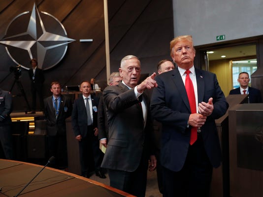Defense Secretary Jim Mattis, during a trip to Vietnam to boost ties with Hanoi, dismissed the idea he’s leaving the Trump administration anytime soon. ✔ US President Donald Trump, right, walks in with US Defense Secretary Jim Mattis, as they arrive to attend the multilateral meeting of the North Atlantic Council on July 11, 2018 in Brussels, Belgium.NATO leaders gather in Brussels for a two-day summit to discuss Russia, Iraq and their mission in Afghanistan.(Photo: Pool photo by Pablo Martinez Monsivais) Defense Secretary Jim Mattis arrived in Vietnam on Tuesday on a trip that seeks to boost ties with Hanoi against a backdrop of China’s growing military assertiveness in the region and dismissed the idea that he’s leaving the Trump administration anytime soon ✔ Tensions between the U.S. and China have flared up periodically in the disputed waters of the South China Sea with the most recent example a near-collision between a U.S. Navy warship and a Chinese destroyer