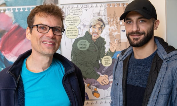 At a London exhibition on migrants, Olivier Kugler and Ammar Raad meet for the first time since their 2016 encounter in a shack ✔ I had the impression people in the camp weren’t very interested in talking to me ✔ Palestinian-Syrian Mahmoud Salameh’s cartoons were inspired by 17 months spent in an Australian detention centre, while British Libyan Asia Alfasi’s manga work explores some of the issues refugees face ✔ Journeys Drawn: Illustration from the Refugee Crisis is at the House of Illustration, King’s Cross, London, until March 24; houseofillustration.org.uk
